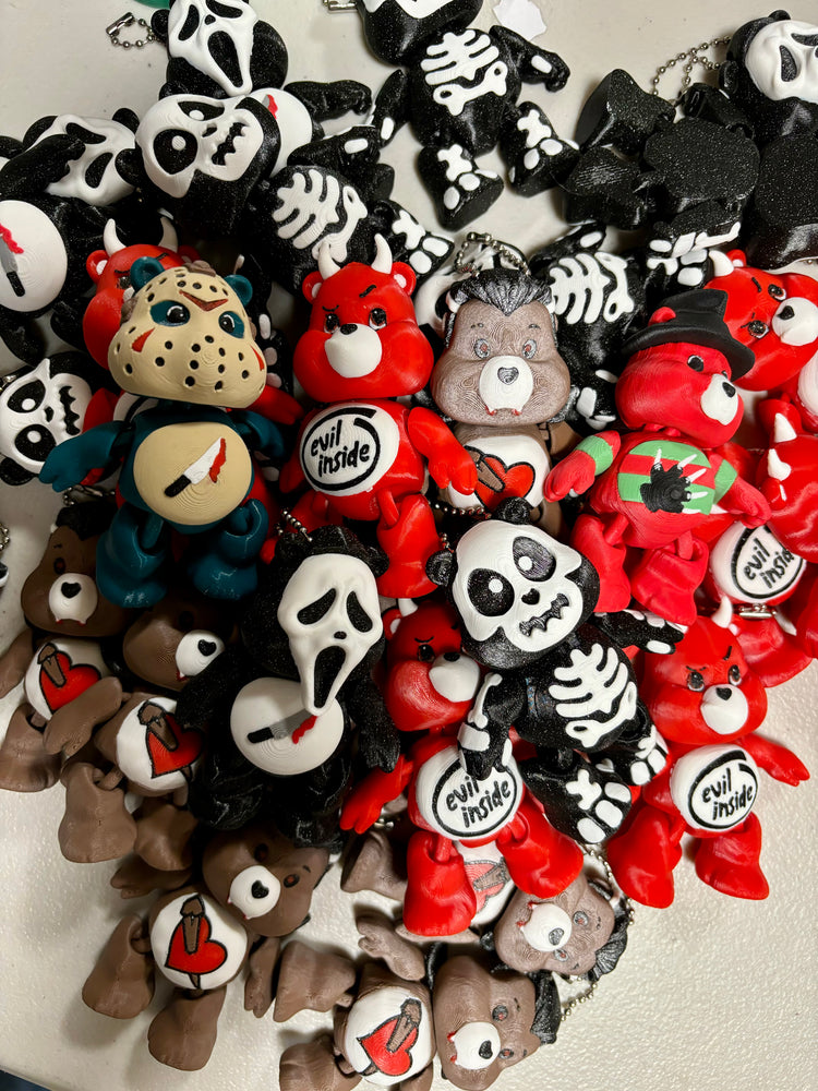 Adorable little bears ready to add flair to your life, these have a keychain option for easy addition to a backpack or other travel bag. There a many options, and even bears going to a Halloween costume party dressed as some of your favorite movie characters.